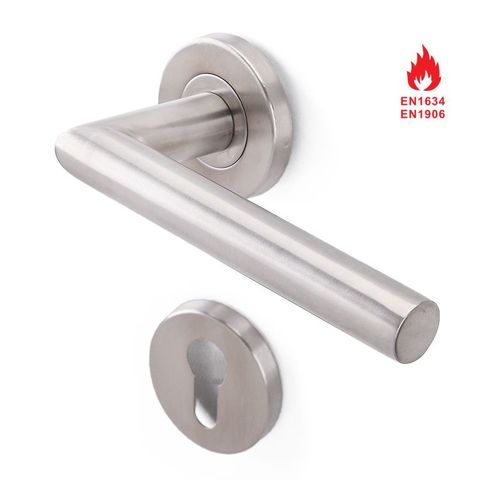 Manija de cerradura de puerta de acero inoxidable, manija hueca para puertas de Metal comerciales, Europa, EN1906